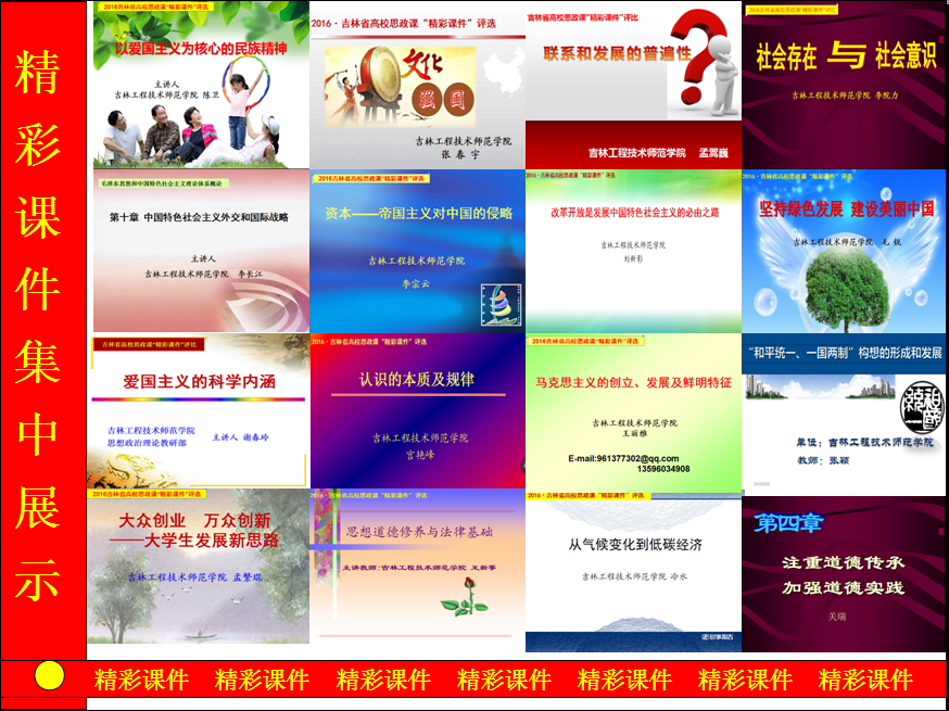 为进一步提高全省高校思想政治理论课教学质量,按照教育部《普通高校思想政治理论课建设体系创新计划》要求,吉林省教育厅于近期开展了全省高校思想政治理论课“精彩教案、精彩课件”评选活动。日前,评选工作已经圆满结束。依据省教育厅《关于公布2016年高校思想政治理论课“精彩教案、精彩课件”评选结果的通知》(吉教思政字[2016]18号),我校共有13名教师在本次“精彩教案、精彩课件”评比中获奖,思想政治理论教研部荣获“优秀组织奖”。获奖教师名单如下: